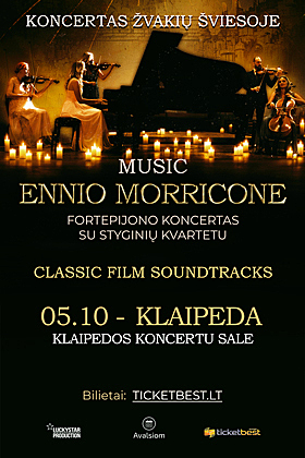 Koncertas žvakių šviesoje: Ennio Morricone muzika fortepijonui ir styginių kvartetui | KlaipedaLeedu, Klaipėda, Klaipėdos koncertų salė