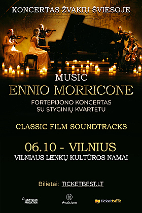 Koncertas žvakių šviesoje: Ennio Morricone muzika fortepijonui ir styginių kvartetui | VilniusLeedu, Vilnius, Vilniaus lenkų kultūros namai