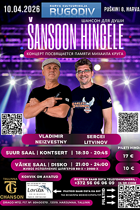 Šansoon hingele. Вечер шансона, дискотека | NarvaEesti, Narva, Narva Kultuurimaja "Rugodiv"